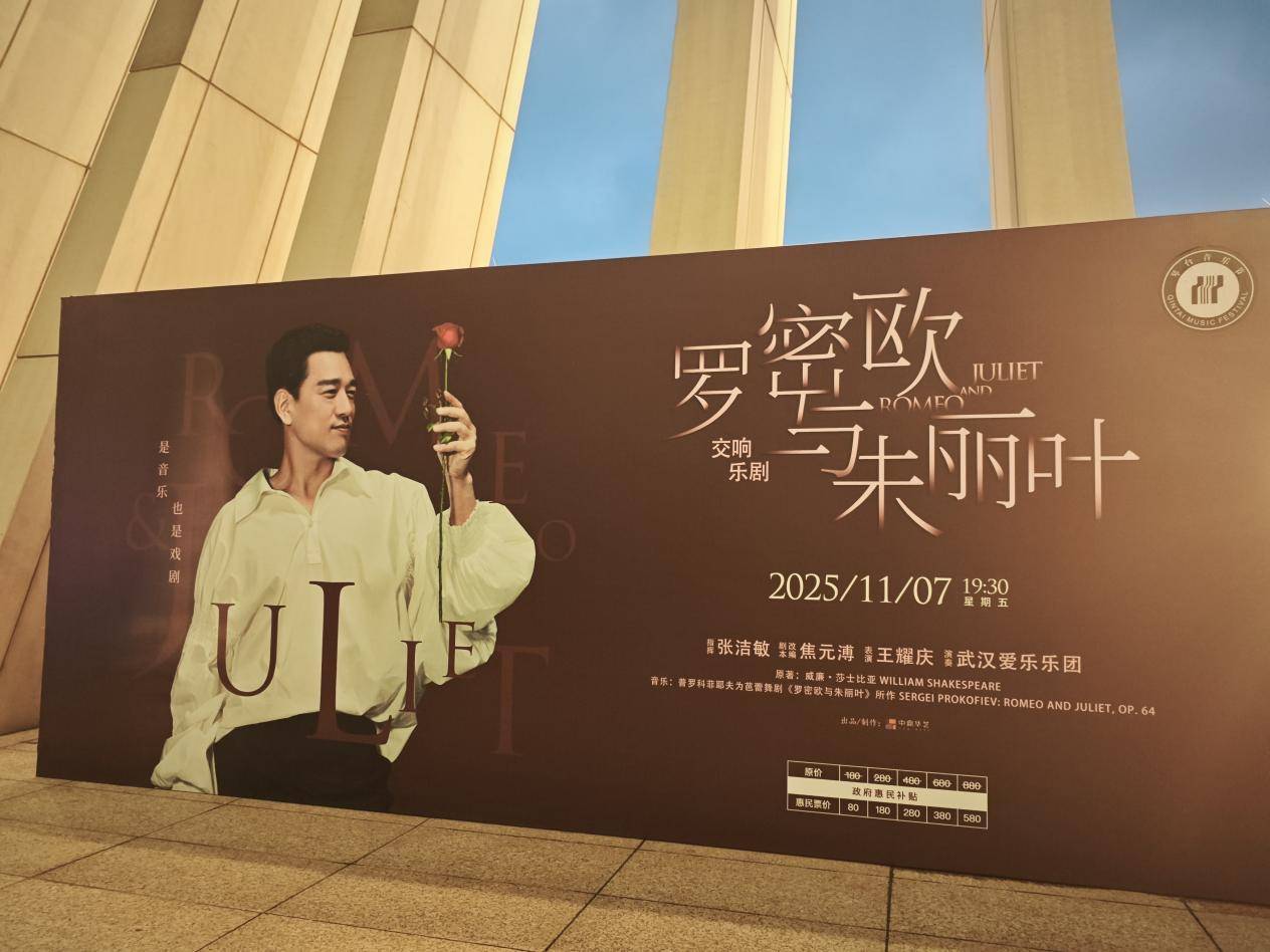 湖北日报讯(记者冯远月 通讯员孙妮)11月7日晚,根据莎士比亚原著改编、著名音乐评论家焦元璞编写剧本、演员王耀庆主演的交响乐剧《罗密欧与朱丽叶》在武汉琴台音乐厅与观众见面。王耀庆饰演15个角色,用“出色”的演技给在场的所有观众留下了深刻的印象。从电影到音乐剧和芭蕾舞剧,《罗密欧与朱丽叶》的故事经久不衰。将这部经典以交响剧的形式再次搬上舞台,无疑会给观众带来全新的文化体验。演出前,王耀庆在与剧迷交谈时向大家解释了什么是“交响剧”:“简单来说,就是有人说安托,音乐就在对应的场景中同步呈现,让大家能够清楚地理解这个旋律所服务的情节以及所描绘的对话。”演出中,他用自己不断变化的声音演绎演绎出精彩的表演,穿插着普罗科菲耶夫的高叙事台词和图形音乐,以人声为乐器,让戏剧和交响乐创造出前所未有的艺术性。演出的另一个亮点来自于王耀庆一人分饰15个角色。每个角色都通过声音和身体的起伏来区分。剧中的角色大多是16岁的青少年。王耀庆在采访中公开表示,诠释这个年龄段人物的关键是展现他们的“纯粹”。 “他们血气十足,一见钟情,诱惑又绝望,情感非常直接。”他指出,传达情感尤为重要。 “只要观众感受到那种令人心碎、形影不离、绝望的情感,就能与剧情产生共鸣。”作为第十四届琴台音乐节主要演出之一年初,交响剧《罗密欧与朱丽叶》吸引了众多剧迷。武汉市民张欢带着家人来到这里。他告诉记者:“我之前在厦门观看了王耀庆指挥的另一部交响乐剧《培尔·金特》,了解到他致力于推广古典交响乐,显然我买了票进去。感谢琴台音乐节为热爱艺术的人们介绍了这么多高水准的演出。演出前,王耀庆也在采访中表达了对武汉的喜爱:“能近距离接触三镇两河交汇的武汉,非常难得。